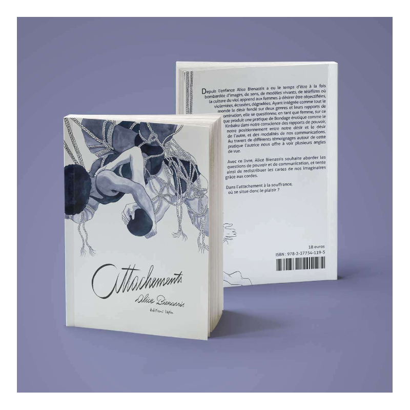 Depuis l’enfance Alice Bienassis a eu le temps d’être à la fois bombardée d’images, de sons, de modèles vivants, de téléfilms où la culture du viol apprend aux femmes à désirer être objectifiées, violentées, écrasées, dégradées. Ayant intégré comme tout le monde le désir fondé sur deux genres et leurs rapports de domination, elle se questionne, en tant que femme, sur ce que produit une pratique de bondage érotique comme le Kinbaku dans notre conscience des rapports de pouvoir, notre positionnement entre notre désir et le désir de l’autre, et des modalités de nos communications. Au travers de différents témoignages autour de cette pratique, l’autrice nous offre à voir plusieurs angles de vue. Avec ce livre, Alice Bienassis souhaite aborder les questions de pouvoir et de communication, et tente ainsi de redistribuer les cartes de nos imaginaires grâce aux cordes. Dans l’attachement à la souffrance, où se situe alors le plaisir ?