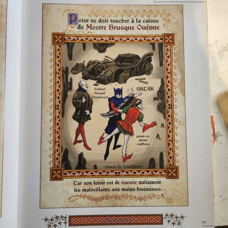 Simon de Thuillières est un enlumineur œuvrant en l’an de grâce 1395. Par un mystérieux sortilège, il a le don d’anticiper les récits et les personnages que ses lointains descendants du XXIe siècle célèbreront. Il revisite nos films, séries, jeux vidéo, mangas et les emblèmes de la pop culture dans des illustrations plus vraies que nature, commentées en vieux français.