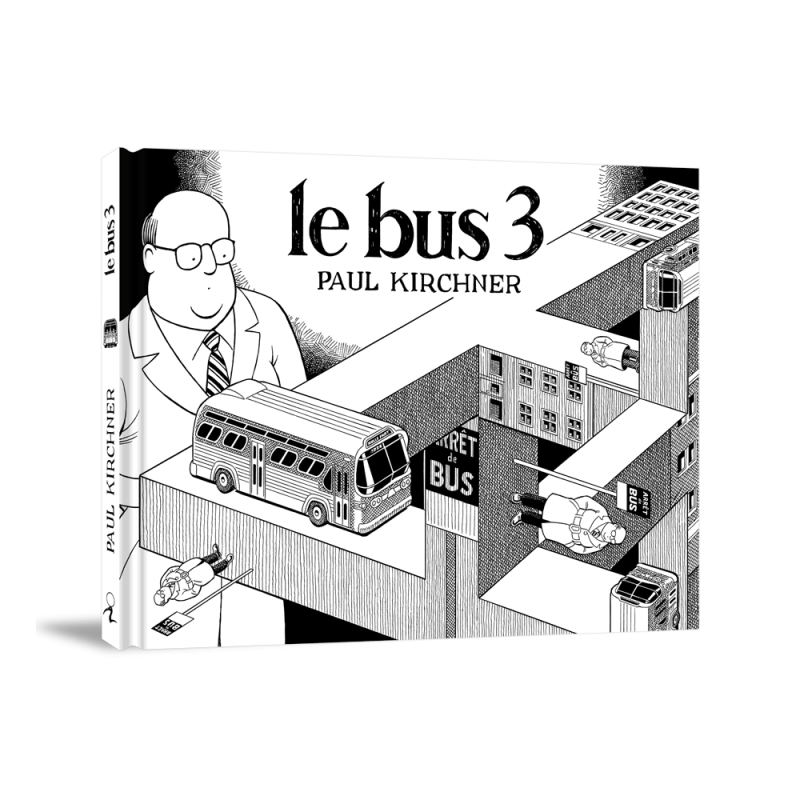 Paul Kirchner convoque à nouveau les spectres de l’autocar et prolonge sa série le bus, initiée en 1979 dans les pages du magazine américain Heavy Metal puis reprise en 2015 avec le bus 2. Chaque planche est une aventure qui entraîne le passager, petit bonhomme chauve à lunettes, vers une nouvelle destination. Son corps est ballotté d'un décor à un autre, découpé, englouti ou détricoté, sans cesse menacé de disparition et subissant toutes sortes de métamorphoses. Le bus, tour à tour ballon de baudruche, acteur de film hollywoodien et salle de cinéma projetant en boucle le même film, est à la fois le démiurge et le théâtre d'une grande machination.