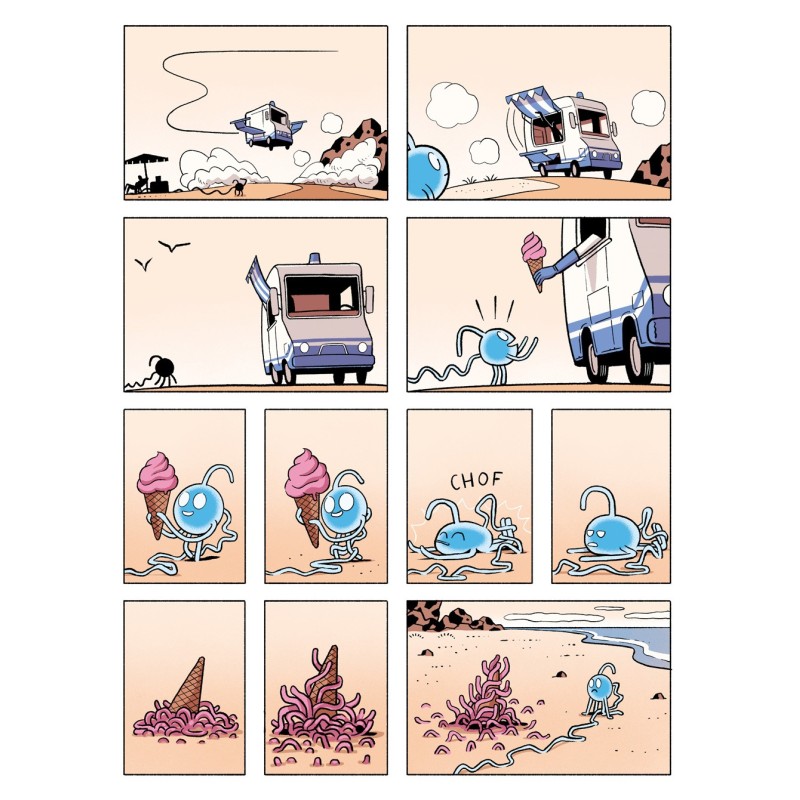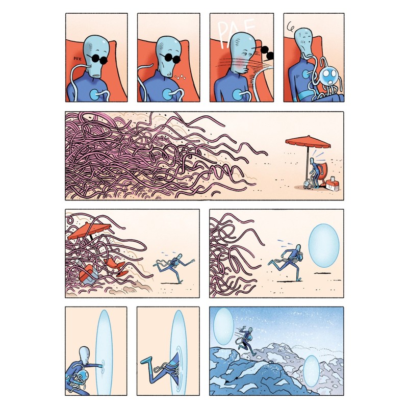 Dans cette bande dessinée muette à l'esthétique rétro-futuriste, Lucas Varela dépeint un monde où l'État, l'industrie et les médias se sont unis pour contrôler une population consumériste, gavée de malbouffe et de contenus ineptes. Il met également en scène une histoire rocambolesque teintée de burlesque et d'humour noir. Ses personnages rappellent ceux du cinéma muet, aspirés malgré eux, maltraités et jetés dans l'action à leur corps défendant.