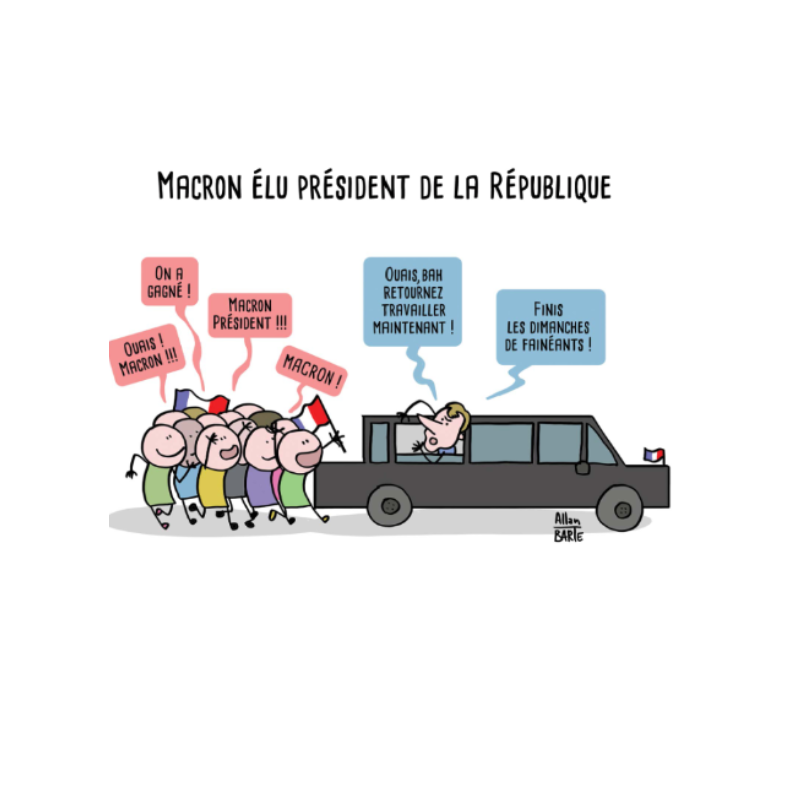 En Marche… Et En Image ! Une BD consacrée au quinquennat d’Emmanuel Macron ! Le dessinateur Allan Barte livre ici un regard critique et plein d’humour sur cette vaste scène politique.