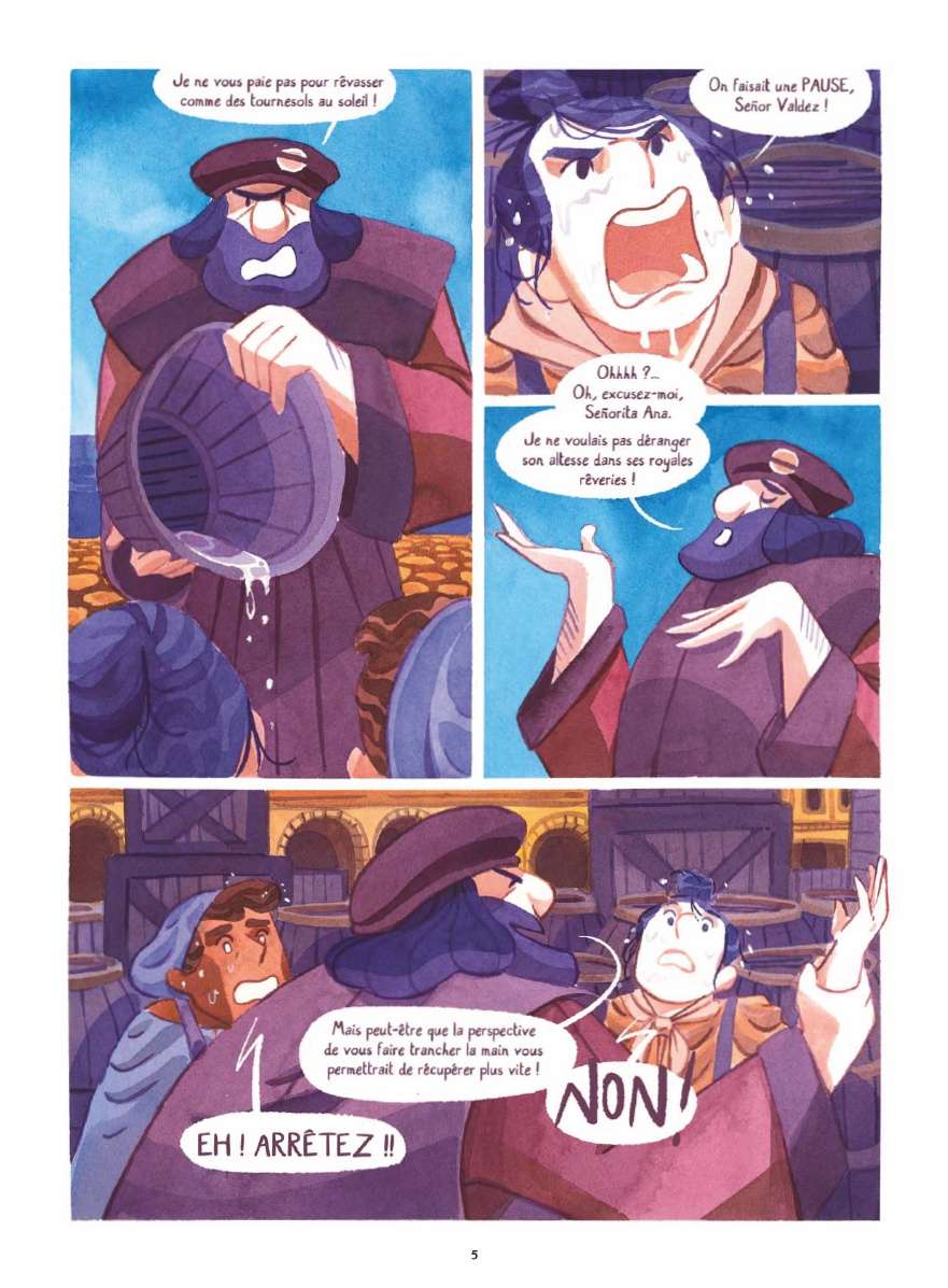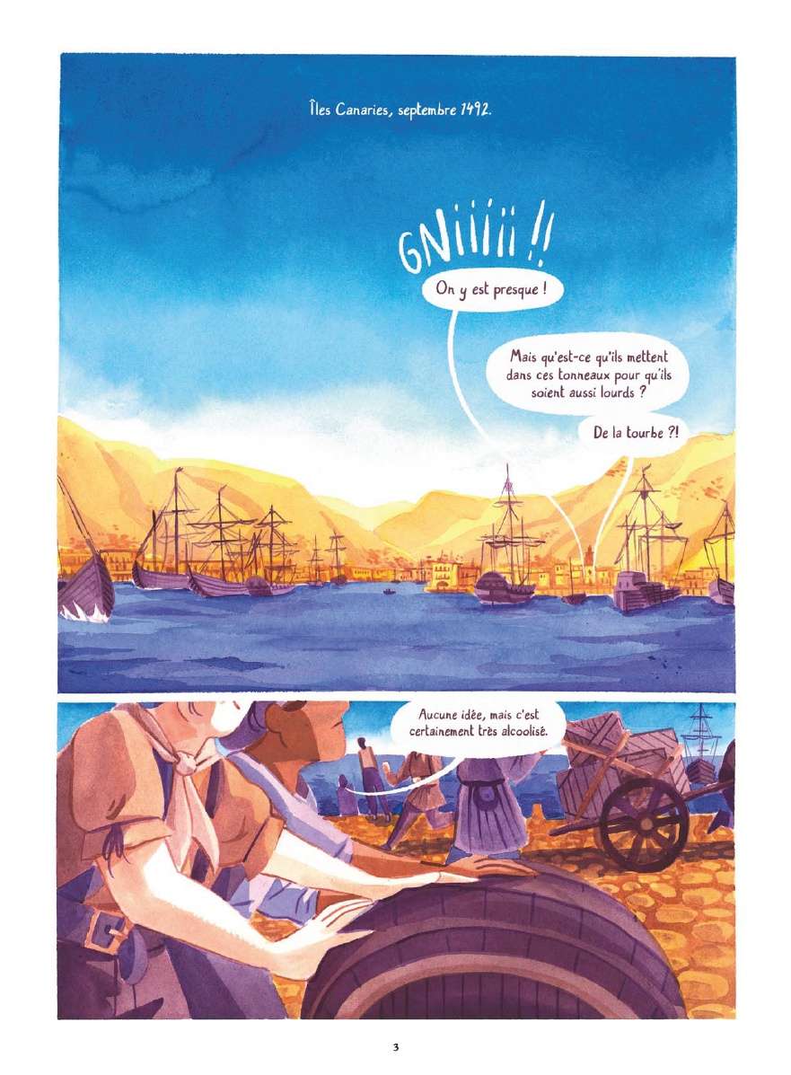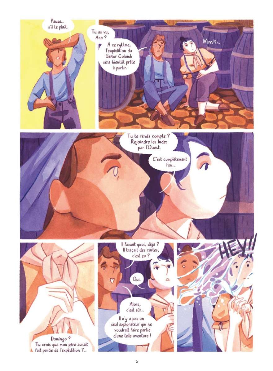 1492. Îles Canaries. Ana et Domingo, deux jeunes orphelins, ravitaillent les navires faisant halte au port de Las Palmas. Alors qu'ils chargent le Santa Maria, ils se retrouvent embarqués dans la fameuse expédition de Christophe Colomb : direction les Indes ! Malheureusement pour eux, dans cette version de l’Histoire, la Terre est plate. Arrivés aux chutes du bout du monde, ils se retrouvent projetés dans un univers fantastique peuplé de pirates en tous genres : l’Entremonde ! D’aventure en aventure, Ana, désormais séparée de ses amis, va devoir s’adapter à cette nouvelle contrée insolite, apprendre ses codes et apprivoiser ses curieux habitants. Peu à peu, elle va réaliser qu’un personnage menace l’Entremonde et que ce lieu est encore plus surprenant qu’elle ne le pensait… Nouvelle série d’aventures prévue en 4 tomes, Ana & l’Entremonde est le fruit d’une belle collaboration entre Marc Dubuisson, qui met sur pied un scénario débordant d’imagination aux dialogues savoureux, et Cy, qui dévoile toute la force de sa personnalité graphique dans des planches en couleur directe à couper le souffle. A eux deux, ils créent un monde riche et cosmopolite permettant d’aborder des thématiques fortes et universelles sous le prisme de la quête initiatique. Une aventure fantastique, qui donne autant envie de mettre les voiles que de s’ouvrir à l’inconnu !