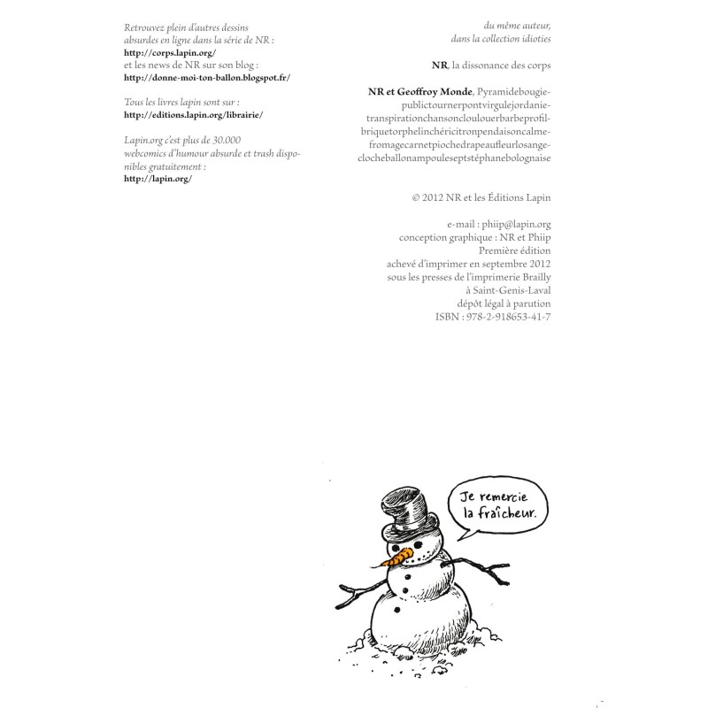 Vous aviez apprécié La Dissonance des Corps "basic", premier livre de NR et mise en bouche de son univers drôle et absurde créés dans sa série éponyme du portail Lapin.