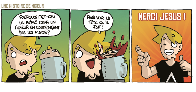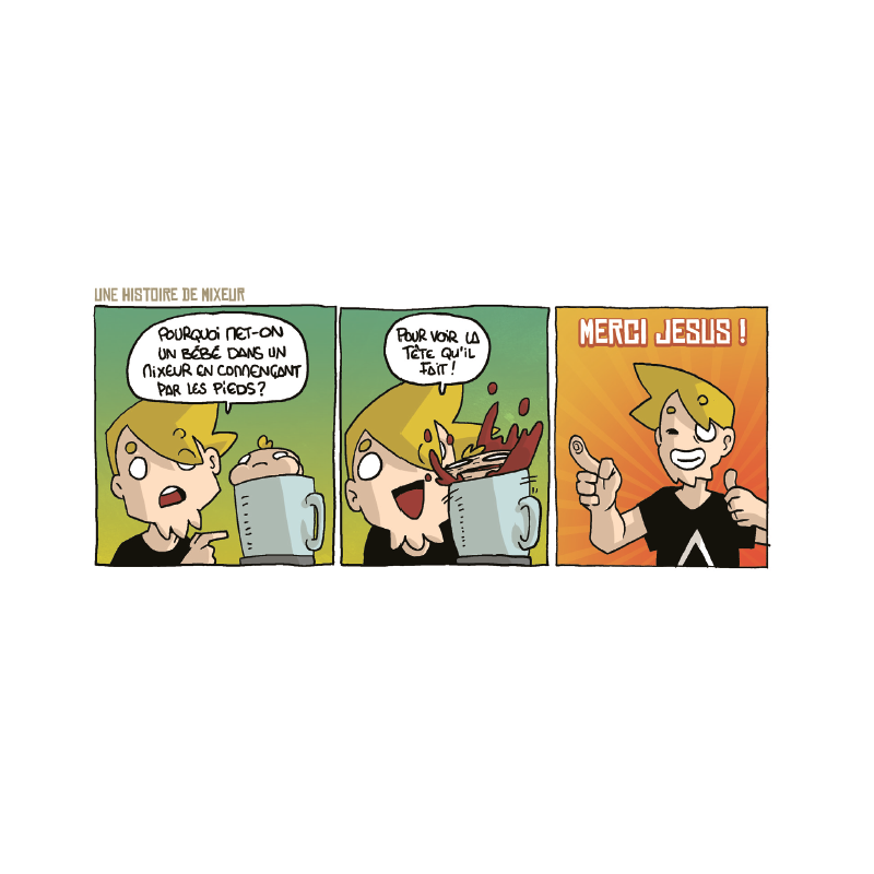 Les blagues de Jesus reviennent, et elles sont belles comme ta sœur, elles sont chaudes comme la braise et grasses comme des frites à la fricadelle de la plage de Dunkerque. Vous connaissez la couleur préférée de Sasha Grey ? Vous savez qui a volé l'orange ? Vous connaissez la différence entre Jésus et un tableau de Jésus ? Bref, on est vraiment vraiment super désolés.