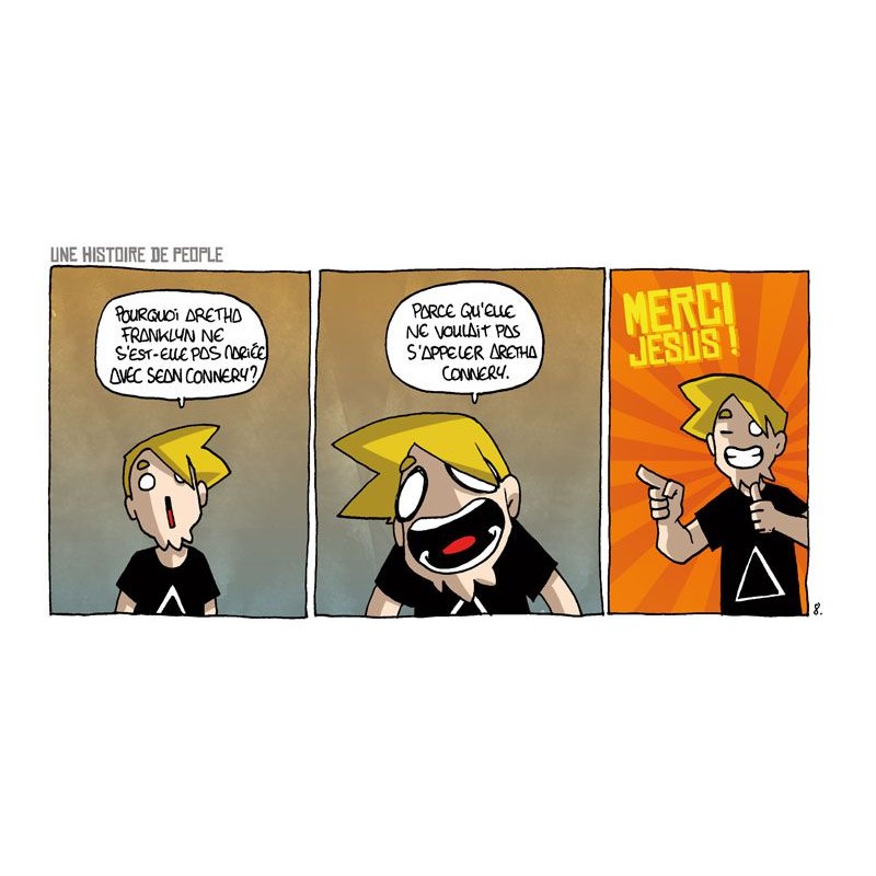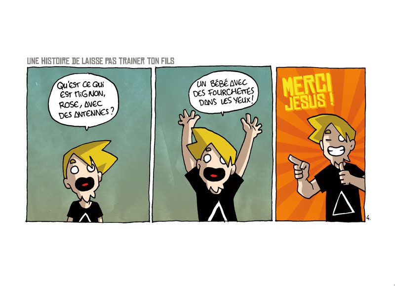 — Tu me dis ça parce qu’on a publié la Nostalgie de Dieu, c’est ça ? Mais il faisait quel genre de blagues Jésus ? “Ouais, venez les mecs, évidemment que vous avez pied ! Pfffff…”