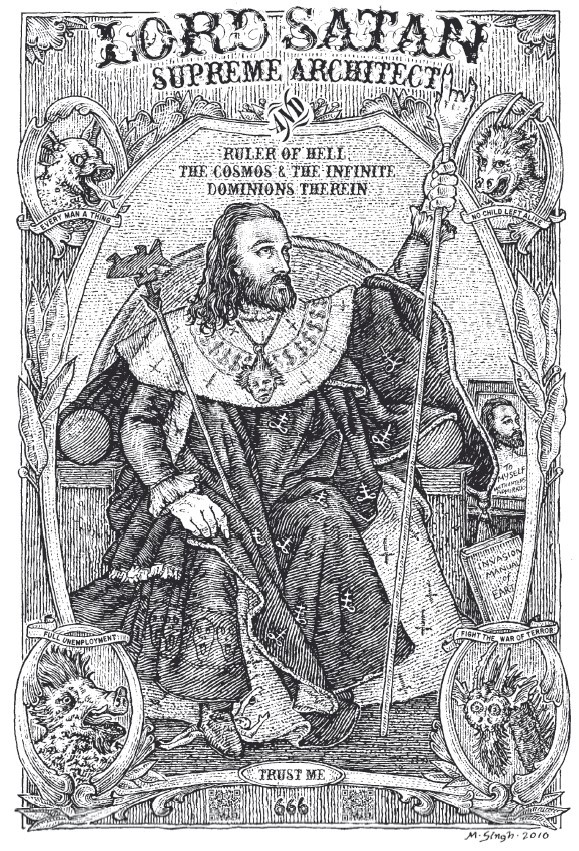 L’Enfer devenant gravement surpeuplé, le Seigneur Satan a besoin de plus de territoire pour ses Damnés. Heureusement la chair humaine est excellente pour la digestion démonique si elle est correctement sautée. Étant donné que les us et coutumes des humains sont totalement inconcevables pour les démons, Satan a écrit cet étrange manuel poétique et militaire pour l’édification de Ses démons envahisseurs afin de faciliter Son invasion de la Terre. Ce livre inclut de nombreuses illustrations dérangeantes, des diagrammes, des recettes, et un dictionnaire des termes terriens complet quoique tout à fait répugnant. Ce chef d’œuvre exprime toute la haine de Satan pour l’humanité et pour lui-même et il inclut dans sa partie encyclopédique "les techniques pour traquer et manger les humains", "les différentes méthodes pour faire des conserves de pus humain" et "comment découper en tranches ou en dés les orphelins humains".