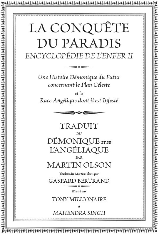 Vous vous êtes délectés de L'Encyclopédie de l'Enfer, sachez que la détestable suite, rédigée de la griffe même de Satan, est arrivée ! Après que l'armée des Enfers ait conquis la misérable planète Terre et se soit repue de la race humaine lors d'un festin de célébration, le Seigneur Satan révèle son intention d'explorer jusqu'aux plus lointains confins de l'univers pour dénicher le trône du méprisable Créateur. Son plan est de renverser Dieu et de prendre la place qui lui revient en tant qu'Empereur de l'Existence. Cependant, des complications Infernales surviennent rapidement : exposé aux rayons du soleil céleste, Satan voit ses cornes et ses griffes devenir fragiles et cassantes et son arrière-train se couvrir d'éruptions cutanées. Puis le fantôme d'une nonne hypnotique prénommée Debbie séduit le naïf Roi de la Haine et l'entraîne sur le mauvais chemin. Le Seigneur Satan doit maintenant faire face à l'Oubli lorsqu'il pénètre dans les labyrinthiques couloirs de la Bibliothèque du Paradis, d'où nul ne peut s'échapper. Mais lorsque les armées des Enfers débarquent pour le retrouver et conquérir le Paradis, elles tombent sur un secret troublant tapi au cœur de la Création, un secret bien difficile à avaler, même pour un démon.
